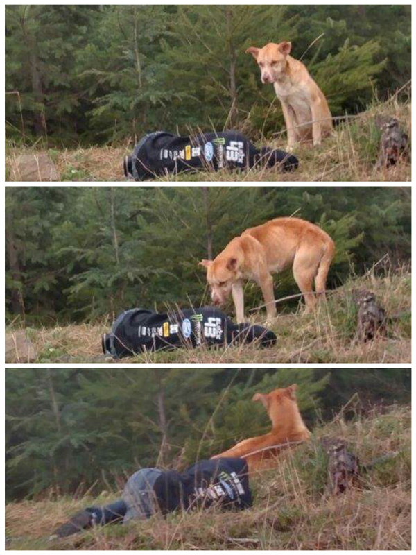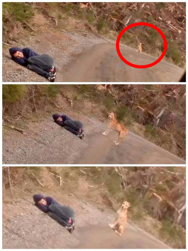 Al día siguiente, regresaron y vieron a Bar en la misma zona. Una vez más, intentaron que se acercara para poder ayudarlo, pero no funcionó. Entonces, a Amanda se le ocurrió una idea creativa. Decidió tenderse en el suelo y fingir que necesitaba ayuda. Amanda yació en la fría carretera de la zona donde creía que Bar se escondía.