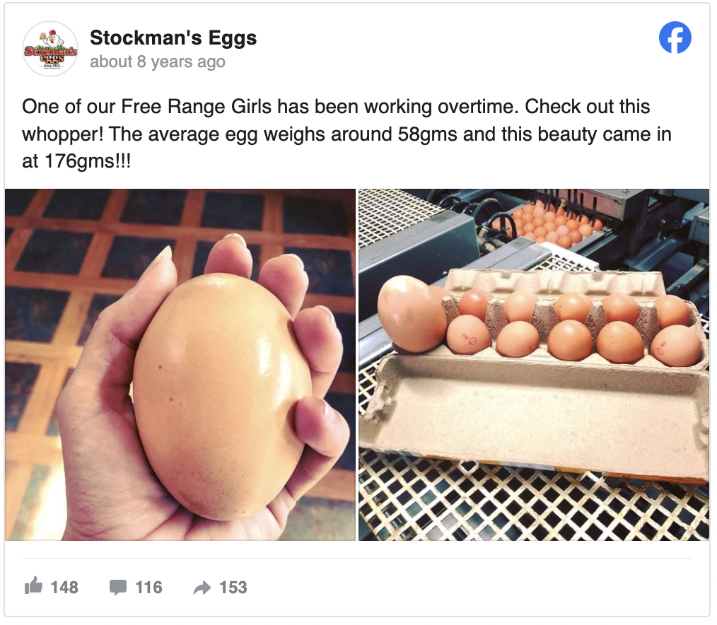 El huevo fue encontrado en Stockman Eggs, una granja familiar en Australia propiedad de Scott Stockman. Un día, mientras recogían huevos como de costumbre, Scott y su equipo notaron uno que claramente no encajaba con los demás. Era enorme.